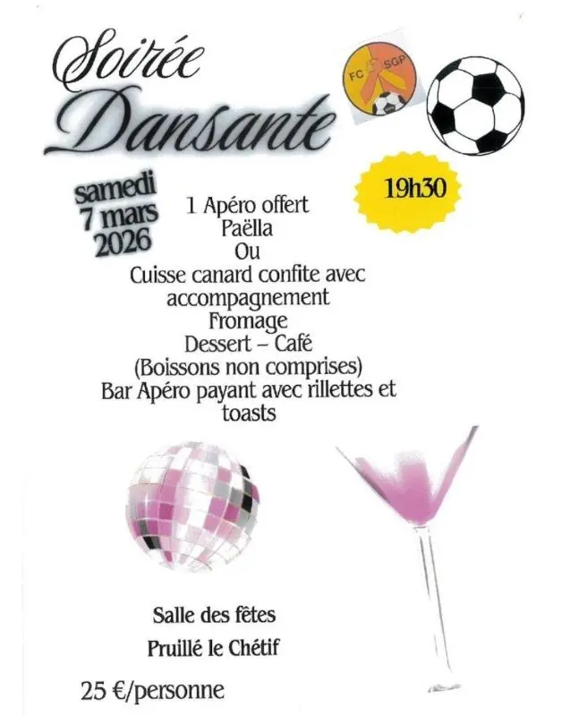 Le samedi 7 mars, le Football Club Saint‑Georges Pruillé (FCSPG) organise une soirée dansante dans...
