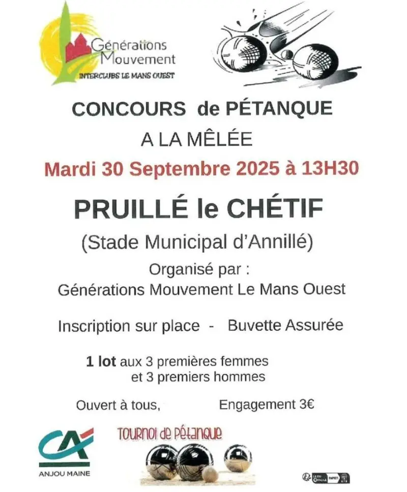 Concours organisé par Génération Mouvement le Mans Ouest mardi 30 septembre 2025 à 13h30 au...